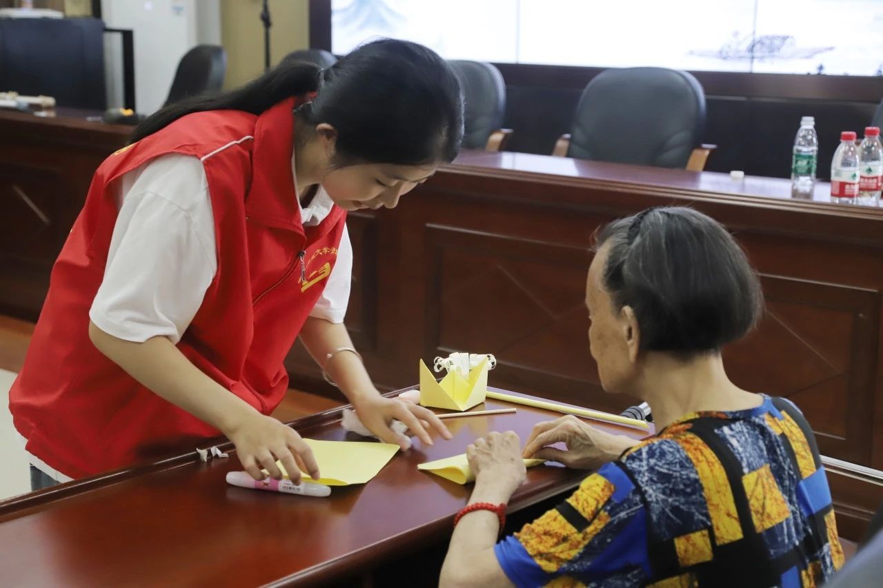 在手工制作的活动中,老人们与实践队员们愉快地交流,脸上洋溢着幸福的笑容。他们讲述着自己的故事,分享着生活中的快乐与忧愁。沉浸在手工制作的世界里,老人们看着自己亲手完成的手工花,仿佛重温了儿时的欢乐时光。