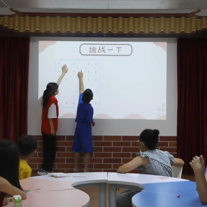 在趣味课堂上,七巧板的巧妙组合与数独的推理计算,成为了孩子们探索数学世界的钥匙。实践队员们通过系统的讲解与具体的实践,引导孩子们在游戏中领悟数学奥秘,获得解题成就。