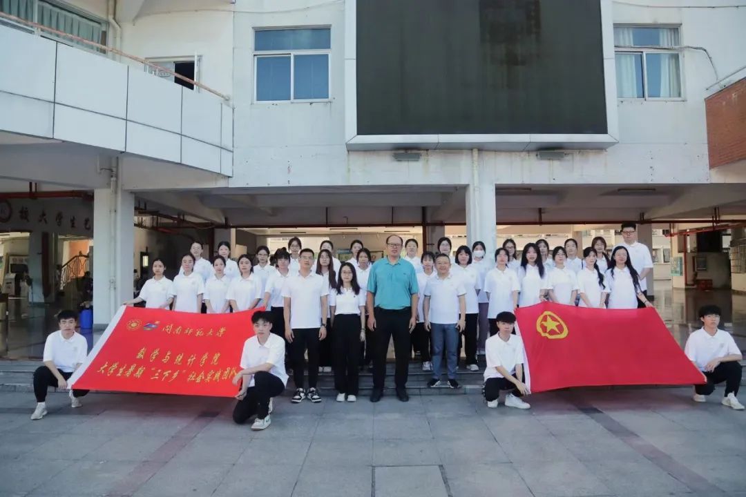 实践队于2024年7月5日上午出发。行前,院执行院长黄韩亮老师、党委副书记胡海智老师来到出发点叮嘱同学们注意安全,帮忙搬物资。随后,ace动漫