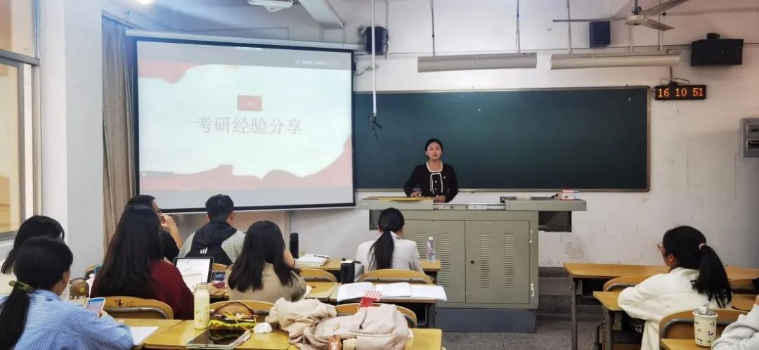 活动伊始,陈茜处长对支部党员表达美好期许,祝愿备考学生金榜题名,并鼓励支部全体党员要凝心聚力,互帮互助,共同推进支部建设。随后,支部进一步发挥研究生党员“传帮带”优势,踊跃上台分享自己的备考经验,加深对支部考研教招备考的本科生党员指导。研究生党员王功勋讲述,作为一名学生党员,要饱含强烈的求知欲和积极的进取心,要不断总结经验,充分发挥党员的创新工作观念,改进方法,坚持就是胜利;研究生党员林俊荣分享了放松心态的方法,他提到,坚持备考的同时,也要合理安排休息,保持身心健康,才能更好地投入学习;研究生党员卢佳炫从教师招聘政策开始,结合自己与身边人的经历,讲述如何摆脱焦虑情绪,提出不要过度焦虑,也不要盲目懈怠,坚持与放松相结合,才会让备考之路更加坦然而有序。