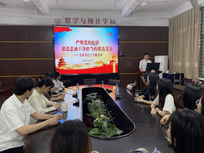 学生第二党支部书记石伟琦老师在砺志114为支部全体党员讲授以“严明党的纪律,锻造忠诚干净担当的模范党员”为主题的党课。