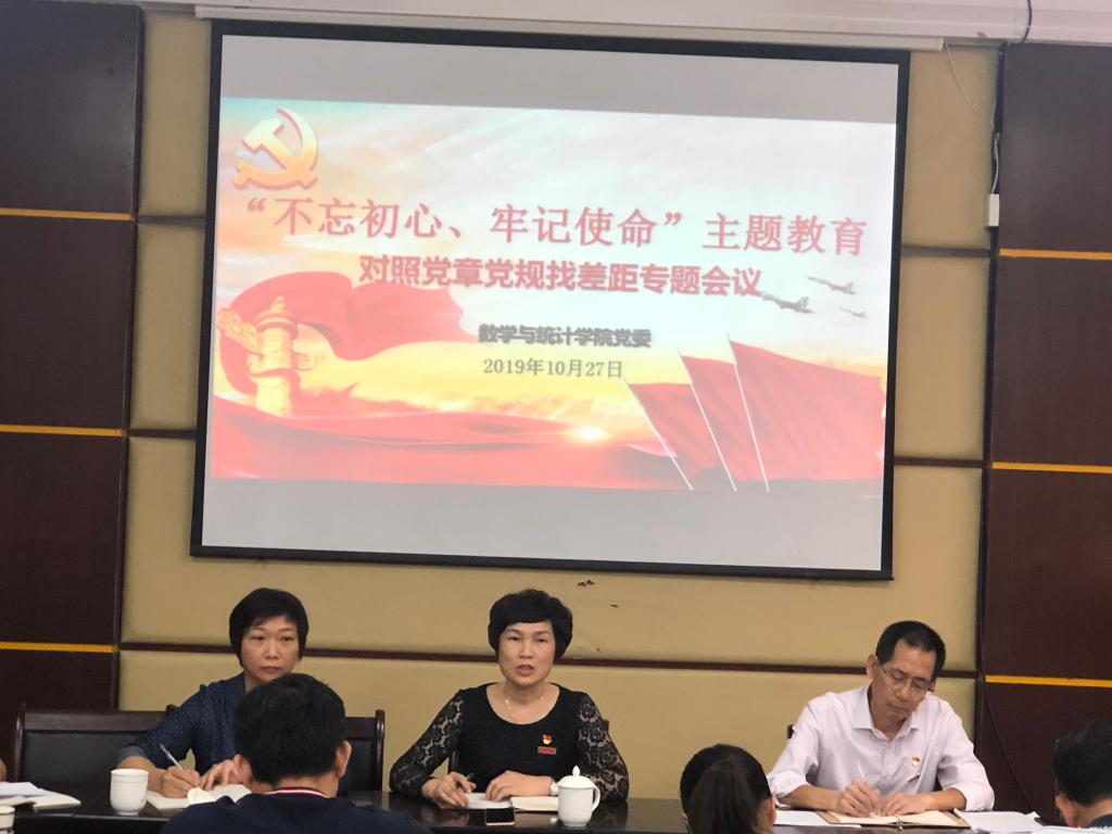 陈晶莹在总结发言中强调,各位领导班子成员要结合今天查找的差距,按照学习贯穿始终、找差距贯穿始终、整改贯穿始终的要求,检视问题、分析原因、做好整改,为下一步开好高质量的民主生活会奠定坚实基础;要结合工作实际,从学习教育、调查研究、检视问题、整改落实四个方面精准发力,扎实开展主题教育,以主题教育 成效助推“双一流”本科专业建设和数学一级学科博士点授权建设,努力构建贯通学科、教学、管理、学生培养的综合人才培养体系;各支部书记要以“会前准备充分认真”、“对照检查准确具体”、“开展批评动真碰硬”、“原因剖析深刻有力”和“ 整改措施切实有效”为要求认真组织好支部对照党章党规找差距专题会议。
